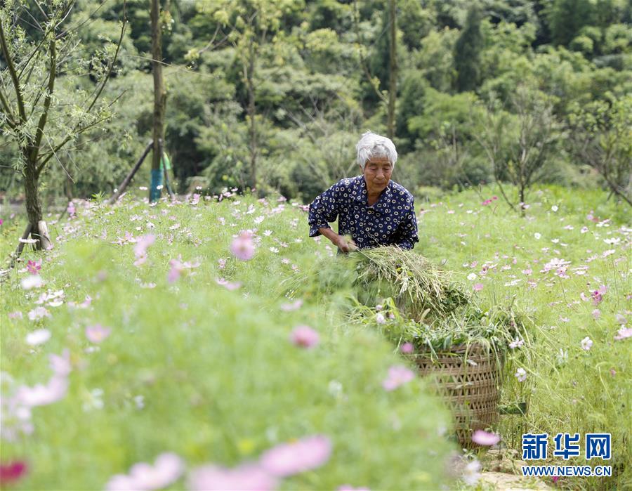 6月10日,在重庆市渝北区大盛镇天险洞村,村民为观赏花卉除草。 近年来,重庆市渝北区大盛镇围绕“环境美、村庄美、田园美、庭院美”全力推进乡村人居环境整治,通过因地制宜推进农村危旧房改造、加强水体治理、完善农村垃圾收运处置体系、建立村规民约引导村民共建共治共享等举措,有效改善了村容村貌和人居环境,百姓满意度、幸福感不断提升。 新华社记者 黄伟 摄