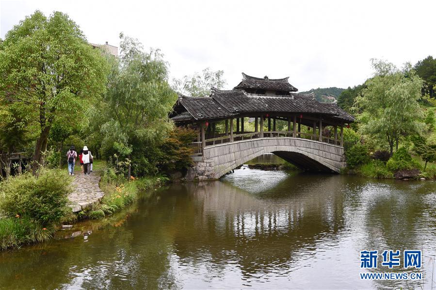 7月3日,游人前往浦源村鲤鱼溪上游的一座传统廊桥参观游览。 新华社记者 姜克红 摄