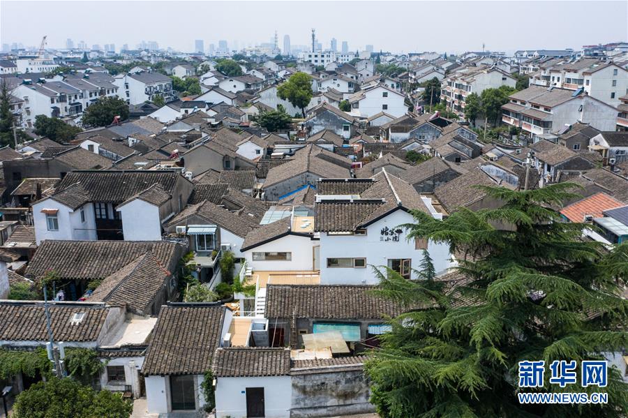 这是7月29日拍摄的位于苏州市平江历史文化街区的“苏州文旅姑苏小院·东花里”(无人机照片)。 新华社记者 李博 摄