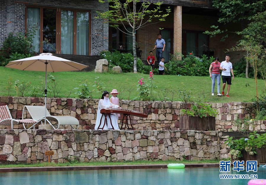 8月14日,在张家界市武陵源区协合乡梓山漫居度假民宿,古筝爱好者为游客演奏古筝。 近年来,湖南省张家界市武陵源区依托旅游资源优势,通过农民入股经营、农村闲置住宅改造等措施在景区周边农村发展民宿经济。设计新颖的特色民宿加上得天独厚的自然风光、凉爽的高山气候,吸引各地游客前来休闲度假。 据了解,目前武陵源区已有乡村特色民宿300余家,年接待中外游客逾300万人次,民宿不仅成为乡村经济增长的新亮点,还带动当地村民在家门口实现就业增收。 新华社发(吴勇兵 摄)