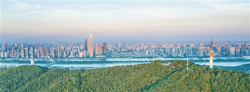 8月14日,夕阳下,岳麓山、湘江、橘子洲与长沙城交相辉映,好一幅山水洲城秀美画卷。