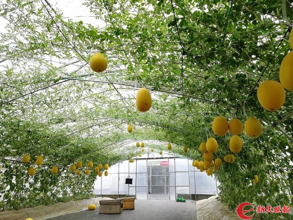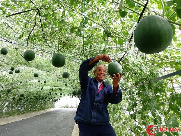 图说:爬架种植西瓜能开展采摘游等农业旅游体验项目。新民晚报记者 孙云 摄