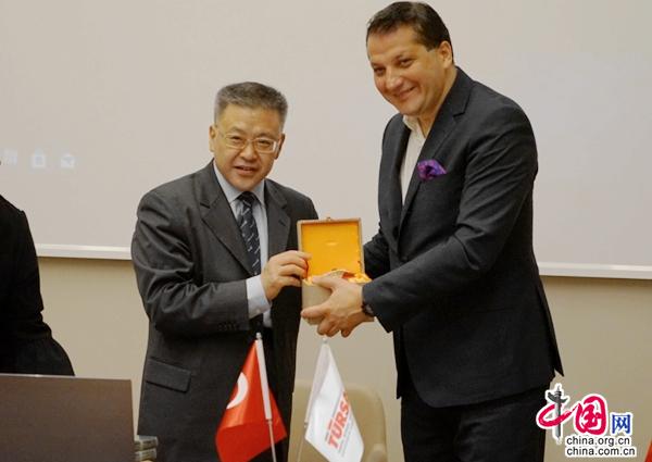会前,四川省旅游发展委主任傅勇林、伊斯坦布尔省副省长伊斯马伊·居尔泰金、伊斯坦布尔文化旅游局宣传部部长Bekir KOPAR 、中国驻伊斯坦布尔总领事馆副总领事钟洪糯进行了会谈,就在“一带一路”背景下,促进双方旅游合作与往来,通过旅游促进两国人民友谊等方面进行深度交流。