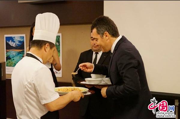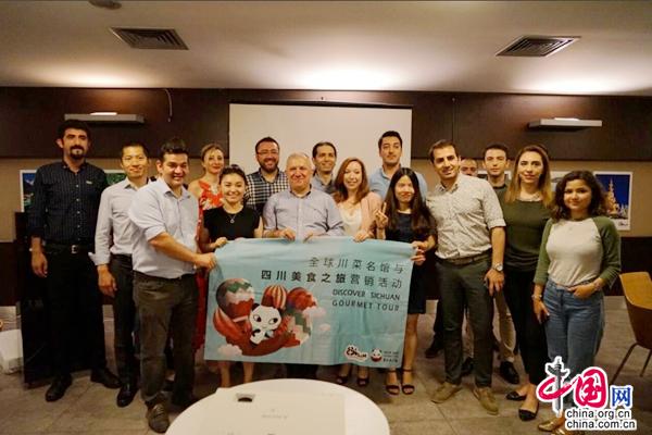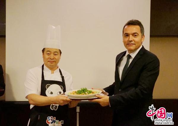 推介会上,成都文旅公司代表向来宾专题推介了四川旅游资源和美食文化,并重点介绍了峨眉-乐山等3条四川美食经典线路,激起了众多来宾对四川美食文化的浓厚兴趣。活动现场,四川专业大厨呈上川菜名菜“麻婆豆腐”,并由伊斯坦布尔省副省长伊斯马伊.居尔泰金洒下来自四川的花椒面“画龙点睛”,嘉宾对四川原汁原味的麻婆豆腐、担担面等美食赞不绝口、意犹未尽,纷纷拍照上传到社交媒体,丰富美味的四川美食将整个推介会现场气氛推向高潮,为土耳其带来四川美食旅游热潮。