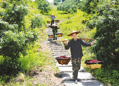 近日,浙江省仙居县安洲街道路口村杨梅基地迎来丰收,杨梅种植农户纷纷忙碌起来。近年来,仙居县打造特色高效农业,发展“杨梅经济”促进当地农民增收。图为杨梅基地的农民采收杨梅。