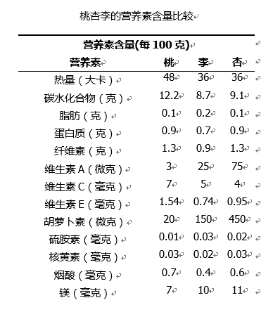 桃李杏含有的能量少而水分多,是减肥的佳品。