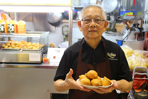 位于丹戎巴格广场的“Rolina咖喱角”,店主姓谭(Tham),五十多年前,他在诺维娜教堂外开了一家路边摊,专售咖喱土豆鸡肉角。