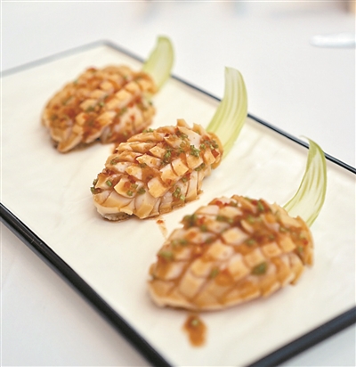 粤菜看似简单,却对材料、工序、时间、火候有相当严苛的要求。香港人孙伟伦师傅是上海米其林指南三星餐厅唐阁的行政主厨,他行厨已有三十余年,粤菜技艺炉火纯青。他认为,保持粤菜传统与追求创新之间并无太大冲突。他会在食材选择上保持新意,烹调手法上传承经典,比如白芦笋当造时,他会用粤菜的手法来还原白芦笋的原风味;若是新式烹调法利于食材,孙师傅亦会借鉴。比如那嫩滑软糯的五头大连鲍鱼,正是师傅用65摄氏度的低温慢煮法,以清酒浸30分钟,用头抽和清酒调汁做成。