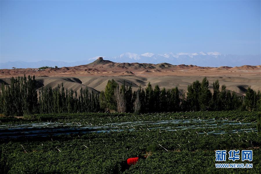 这是9月5日拍摄的位于甘肃省敦煌市阳关镇的优质葡萄基地。 新华社发(张晓亮 摄)