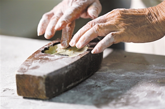 上世纪80年代做月饼,每个环节都是靠手工,压模是用木模,烘烤是用柴火,非常费时费力。上世纪90年代开始,电的应用开始逐渐普及,月饼烘烤开始用电。如今,在叶锡祺的饼店内,除了按压成型和烘烤两个环节会借助机器的辅助外,其余的环节仍坚持纯手工制作,“纯手工做出来的月饼口感会更软腻。”叶锡祺说。