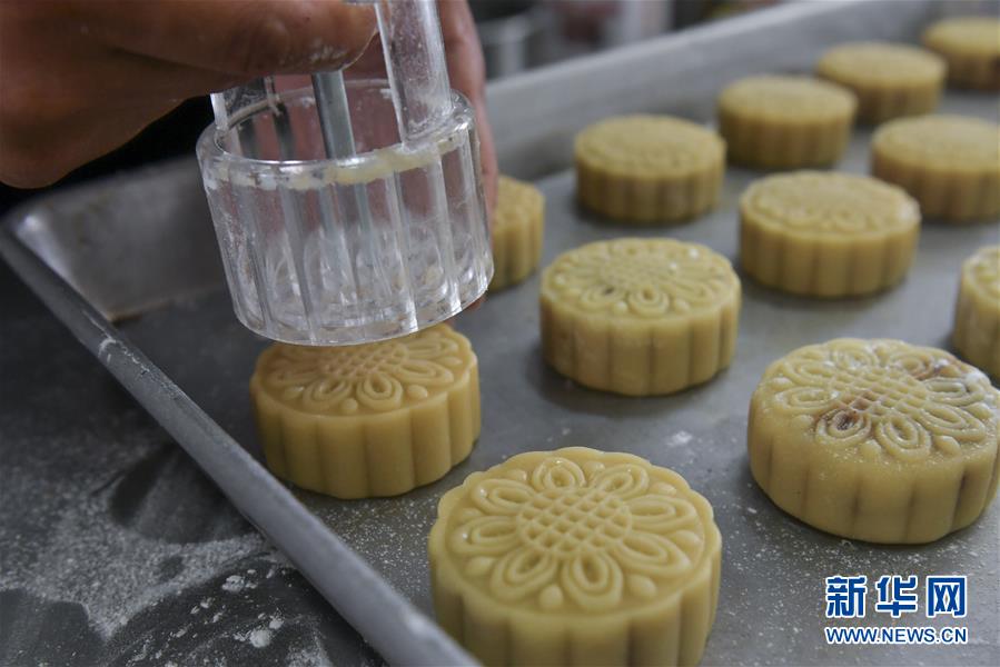 9月19日,新疆伊宁市实大实点心店老板马川在制作月饼。 新华社记者 王菲 摄