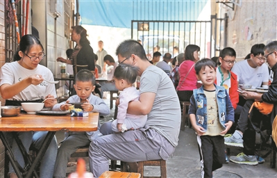 松姨的小店虽然开在简陋的巷子里,却丝毫不影响食客们的热情。