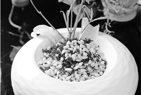 “永日向人妍,百合忘忧草。”乍一听紫金白玉这个菜名,钱报记者脑海中浮现的是紫薯、山药等食材,仔细一看菜肴配料居然是沂蒙山野生蚂蚁、大松子以及百合花。云澜湾泓庐SPA精品酒店的负责人介绍,这是餐厅“鲜花宴”中的一道特色菜,设计这道菜品的初衷就是想把有祛风除湿、强筋壮骨的食用蚂蚁和云澜湾四季花海中的百合花结合。