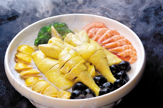 花园酒店中餐行政总厨温思恩表示,广东人讲究无鸡不成宴,而杏花鸡又称封开“米仔鸡”,是列入《中国家禽品种志》的广东三大名鸡之一,素有“玻璃皮、蔗渣骨”之誉。大厨将杏花鸡隔水炖后肉质更为结实,再将鸡汤及杏花鸡放入煲内上桌,保持鸡的鲜味。