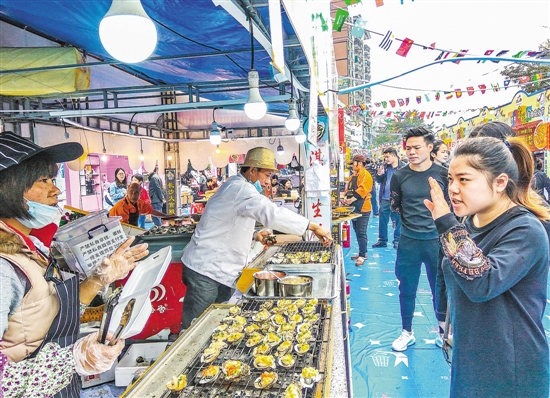 油煎芝麻生蚝、香炸脆皮生蚝、炭烧生蚝……宝安区沙井街道迎来一年中最“香”的节日,浓郁岭南特色的蚝文化在这一年一度的“蚝”门盛宴中代代相传。12月21日,第十五届宝安区沙井金蚝美食民俗文化节(以下简称“沙井金蚝节”)如约而至。作为广东省旅游文化节的重要组成部分和深圳市“一区一节庆”活动,沙井金蚝节已经成功举办了十四届,其品牌影响力从深圳走向广东,从广东走向全国,已超越了单纯的旅游节庆活动范畴,成为这座“千年蚝乡”的一张闪亮名片。