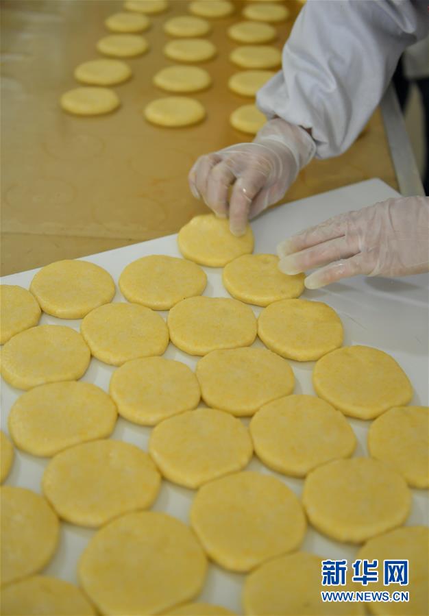 1月9日,湖北省恩施土家族苗族自治州恩施市芭蕉侗族乡小红岩村曾海生态农业专业合作社的村民正在摊晾印花糍粑。新华社发(杨顺丕 摄)