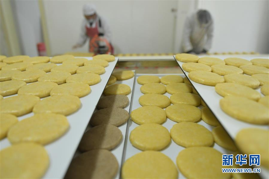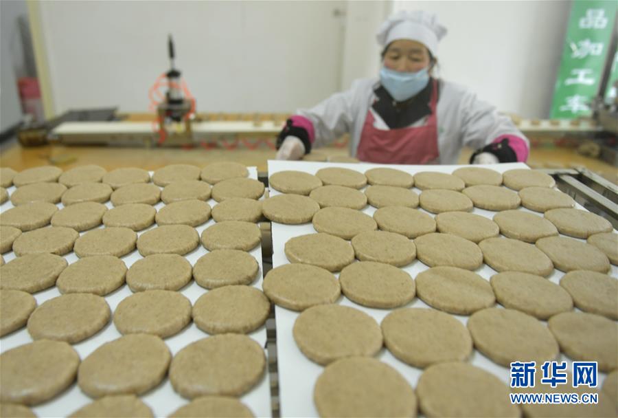1月9日,在湖北省恩施土家族苗族自治州宣恩县万寨乡伍家台村,工人将糍粑放在架子上摊晾。 新华社发(宋文 摄)