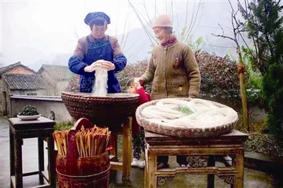 春节临近,正是临安区湍口镇传统美食——三联索面大量上市的时候。