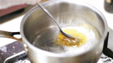 4.如果不会炒糖,可以不用糖,在出锅之后,立即放在白糖里拌几下,即可粘上糖粒。