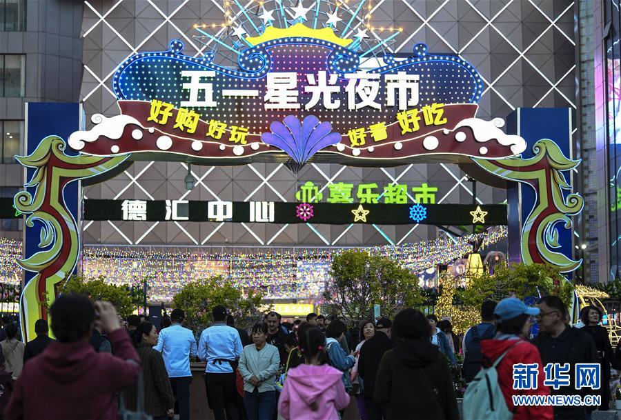 乌鲁木齐五一星光夜市门前人头攒动(5月6日摄)。 新华社记者 王菲 摄