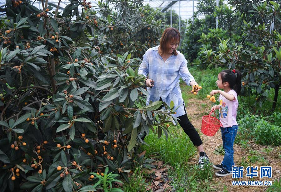 5月26日,游客在林城镇上狮村的枇杷种植园内采摘枇杷。 初夏时节,浙江省长兴县林城镇多个乡村的生态果园迎来了“水果采摘季”。近年来,长兴县林城镇大力推动水果种植业,目前生态水果种植面积4000多亩。当地乡村采摘游从5月一直延续到9月,采摘品种包括樱桃、枇杷、蓝莓、水蜜桃等,成为当地美丽乡村的旅游“金名片”。 新华社记者 徐昱 摄