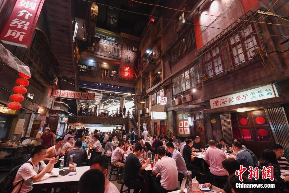 6月13日,文和友老长沙龙虾馆内坐满了食客。该餐厅拥有近5000平方米的超大空间,融合了老长沙的人文情怀和特色餐饮的新创意,完全还原了上世纪八十年代老长沙的风貌,受到了众多都市人的热捧。中新社记者 杨华峰 摄