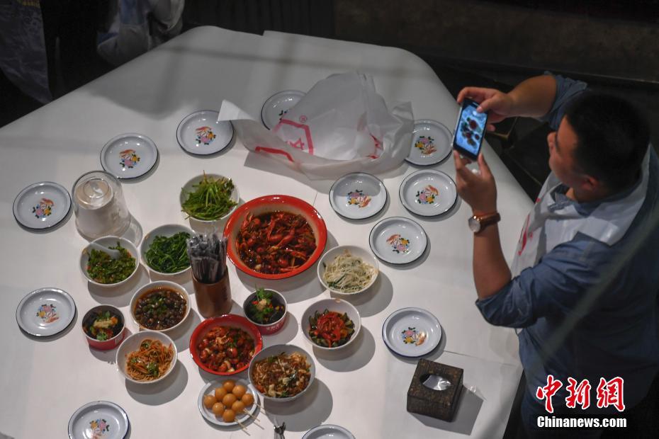 6月13日,一位食客正在拍摄菜品。该餐厅拥有近5000平方米的超大空间,融合了老长沙的人文情怀和特色餐饮的新创意,完全还原了上世纪八十年代老长沙的风貌,受到了众多都市人的热捧。中新社记者 杨华峰 摄