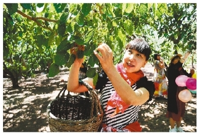 随着小南沟桑葚知名度的与日俱增,吸引了大批游人。据不完全统计,每年来小南沟的游客达30万人次,旅游消费收入达200多万元。图为游客兴致勃勃采摘桑葚。