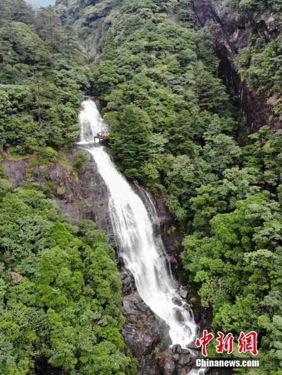 浙江龙泉山游客“瀑布餐厅”体验清凉
