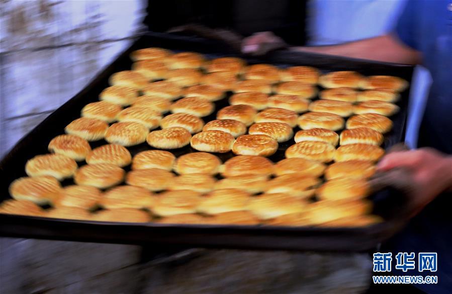 这是8月21日在伊拉克巴格达一家面包店拍摄的烤制好的“克莱佳”。 新华社发(哈利勒·达伍德摄)