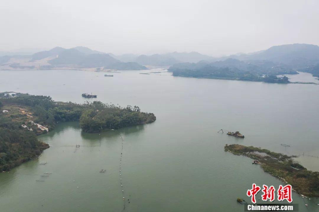 宽广、支流众多、水路纵横交错的郁江水库一角。