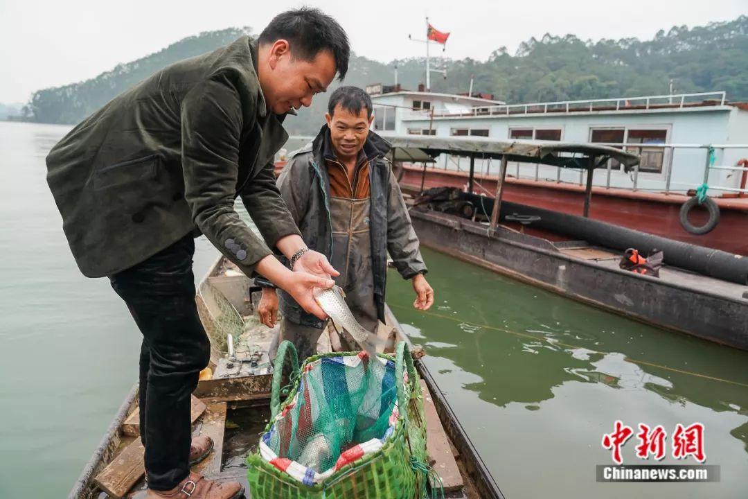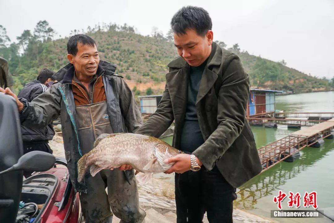 这就是大自然的馈赠!渔民在库区刚捕获的有草鱼、鲤鱼、桂花鱼、鲮鱼等鱼类,其中一条桂鱼超过6斤重,正是做鱼生上好的食材。