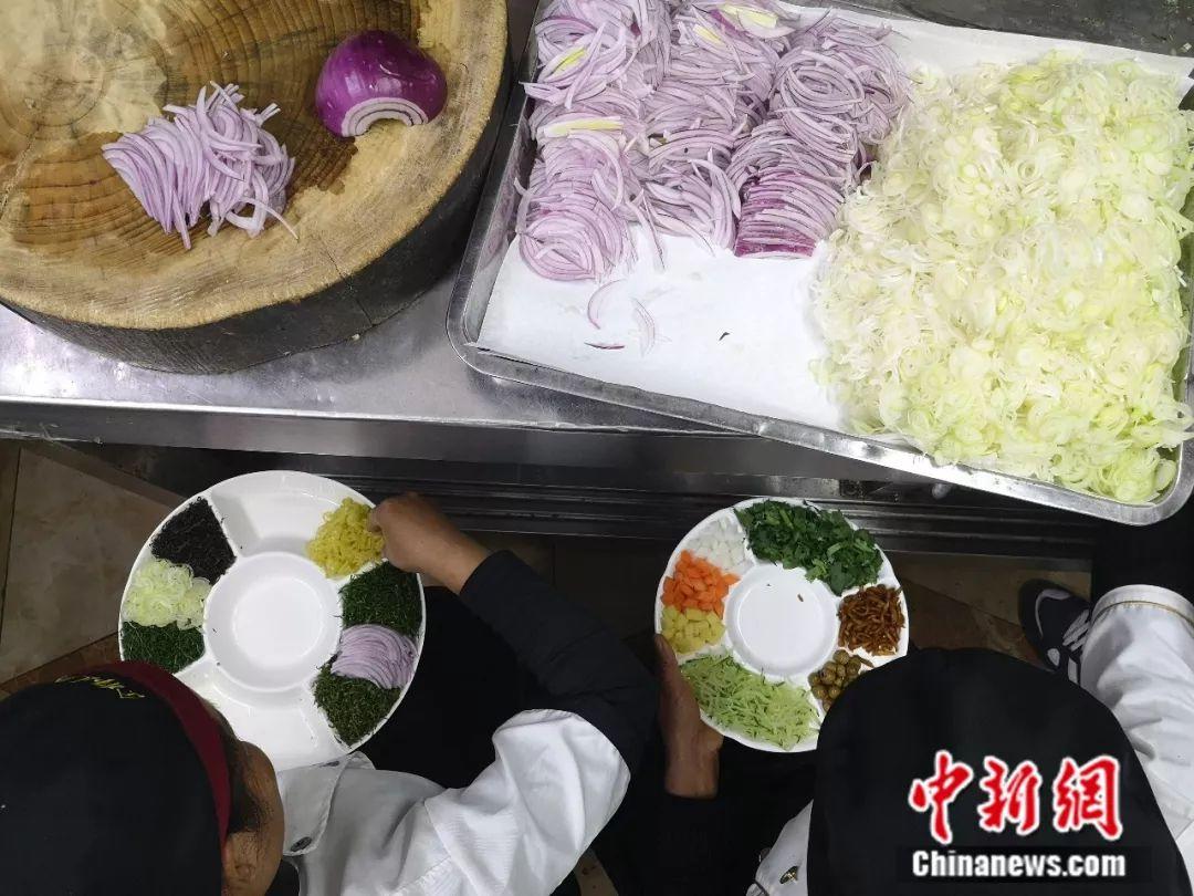 终于到了鱼生餐馆,厨房的伙计们已经在准备鱼生的各种配料。