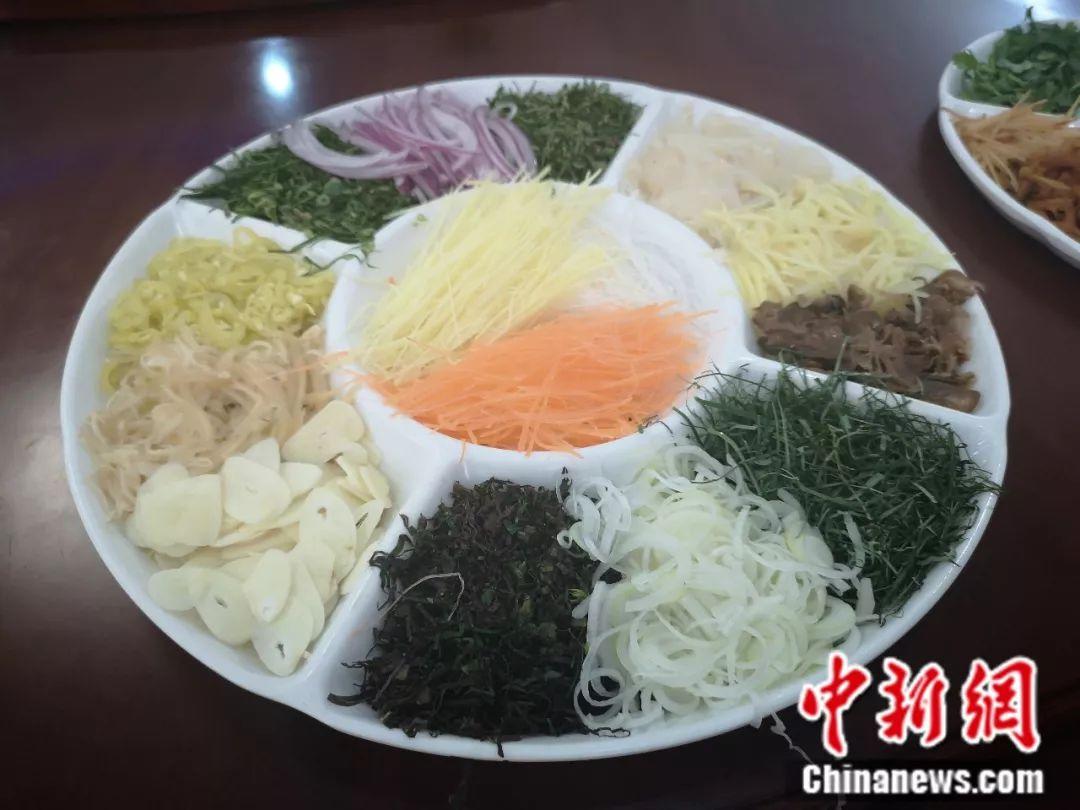 鱼生的佐餐配料精致而丰富,也是横县鱼生“美味”的秘密所在。经过长期探索,横县人将鱼腥草、紫苏叶、酸荞头、柠檬、大蒜、生姜、萝卜、香菜、洋葱等20多种配料,切成如发丝般精细,摆为一盘,沾上花生油、生抽酱油和胡椒粉后,与鱼生片相伴食用,达到去腥增鲜、杀菌、清热解毒的功效。