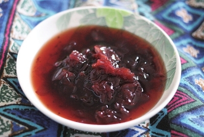 1.将新鲜花瓣用蜂蜜腌渍,或用玫瑰酱腌渍。