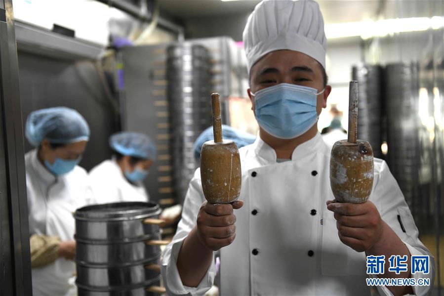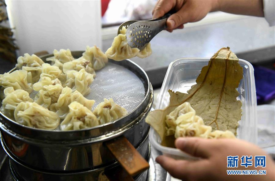 4月23日,在石家庄市正定县南仓口王家烧麦馆,工人在打包外卖。 “烧麦”是一种加馅蒸熟的面食。河北石家庄正定王家烧麦以白面、牛肉、羊肉为原料,加上祖传秘制调料和香油等,经过和面、擀皮、选材、剁馅、拌馅、蒸制等工序制作而成。2011年,正定王家烧麦被列入石家庄市级非物质文化遗产名录。 新华社发(陈其保 摄)