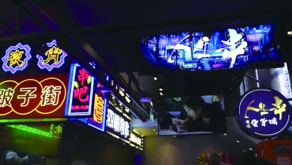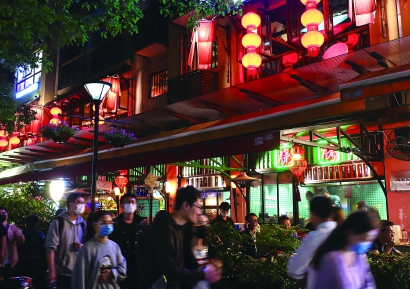 华灯初上,沿街近百家店铺渐次亮起灯,一番有别于白天的热闹和繁荣呈现在市民和游客眼前。