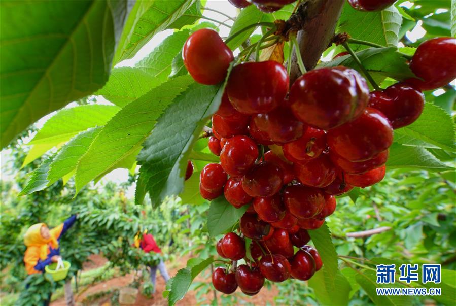 5月24日在滦州市九百户镇鸡冠山生态产业园拍摄的大樱桃。新华社记者 杨世尧 摄