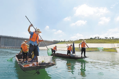 淅川县有2000多名专业护水队员,常年守护着库区水面和库周沿岸。他们每天进行水面漂浮物、河岸垃圾的打捞清理。