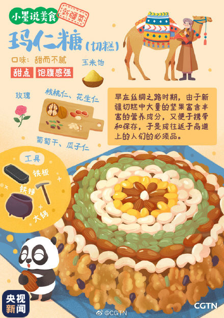 玛仁糖又名切糕,是新疆随处可见的小吃。