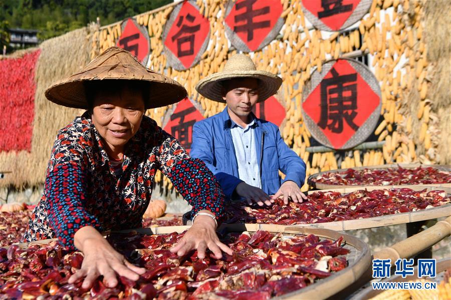 深秋时节,位于福建省三明市尤溪县洋中镇的桂峰村,古民居与晒匾里五彩缤纷的农作物,构成五彩斑斓的调色板,展现秋收风情。