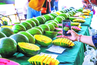 宝宝西瓜小而甜、红黄相间彩虹瓤、蕾丝花边核桃纹……这个周末,由北京市西甜瓜创新团队引种的100多个特色西瓜甜瓜品种成熟上市,它们大小各异、瓜皮黄绿黑不等、瓤色红黄彩不同,为市民带来新鲜有趣的采摘品鉴体验。