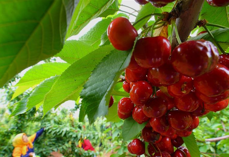 5月24日,在滦州市九百户镇鸡冠山生态产业园,果农在采摘大樱桃。近日,河北省滦州市九百户镇的大樱桃进入成熟采摘期,果农抢抓农时采摘上市。近年来,该市发展林果种植业达10万亩,带动近1.2万农户增收。