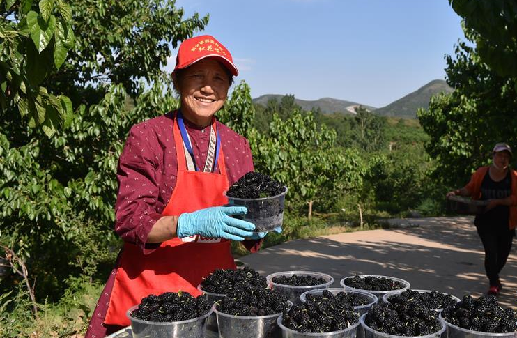 初夏时节,记者来到天津市蓟州区于桥水库南岸的红花峪山谷,看到漫山遍野的桑树翠绿欲滴,绿叶后颗颗诱人的桑葚挂满枝头。