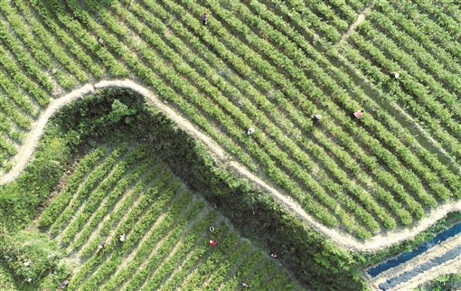 谷雨将至,湖南省张家界市永定区高山生态莓茶进入春季采摘佳期,当地茶农抓抢农时采摘加工。近年来,当地依托丰富的旅游资源和优良的生态环境,通过“公司+合作社+基地+农户”发展模式,大力推广种植高山生态莓茶,探索出一条以莓茶推进旅游扶贫、实现乡村振兴的新路子。