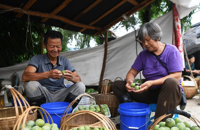 盛夏时节,重庆市巫山县的10万余亩挂果脆李陆续进入采摘期。 巫山县位于长江三峡库区腹心地带,光照、气候、海拔、土壤等自然条件适宜脆李生长。