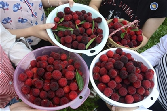 重庆梁平和林镇杨梅成熟 吸引游客体验采摘乐趣