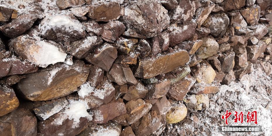 图为盐田房内石头墙壁外侧渗出的盐晶。中新网记者 吉翔 摄