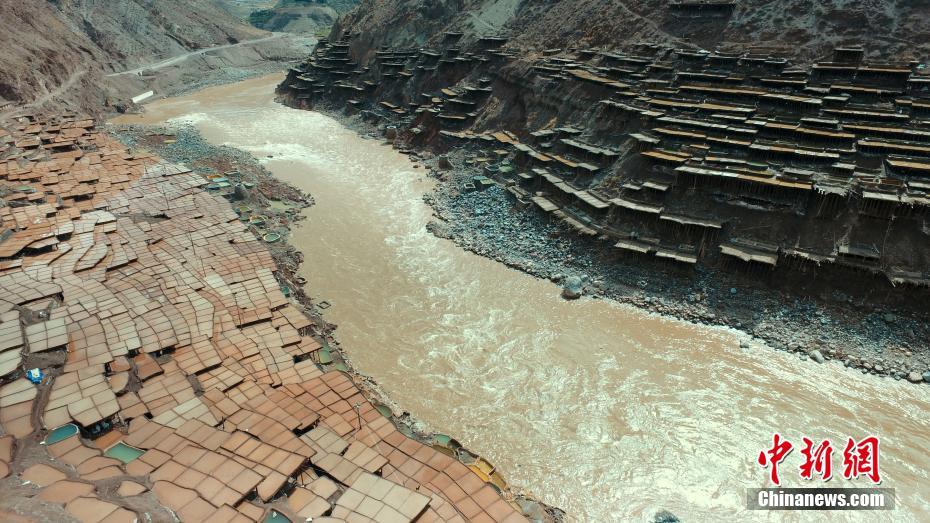 芒康古盐田位于西藏昌都芒康县纳西民族乡澜沧江东西两岸,该盐田历史悠久,至今已有千余年历史,现有盐田3000多块。这里仍用最原始的生产法方式制盐,当地村民从澜沧江边的盐卤水井中抽出卤水倒在各自的卤池中风干浓缩,再倒在盐田进行风干,结晶成盐。图为盐田航拍图。中国西藏网 陈卫国 摄