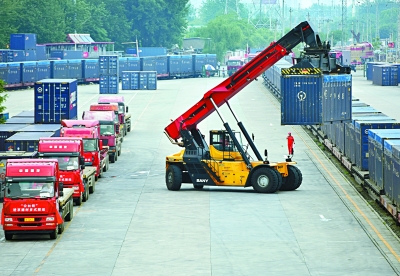 张金超表示,目前每天一趟专列100箱、3200吨运量,相当于每天减少100辆公路大货车运量。现阶段货物采取公铁联运方式,到达场站后,由环保型卡车运往目的地,全程中铁路运输占90%,碳排放较传统公路运输减少80%。